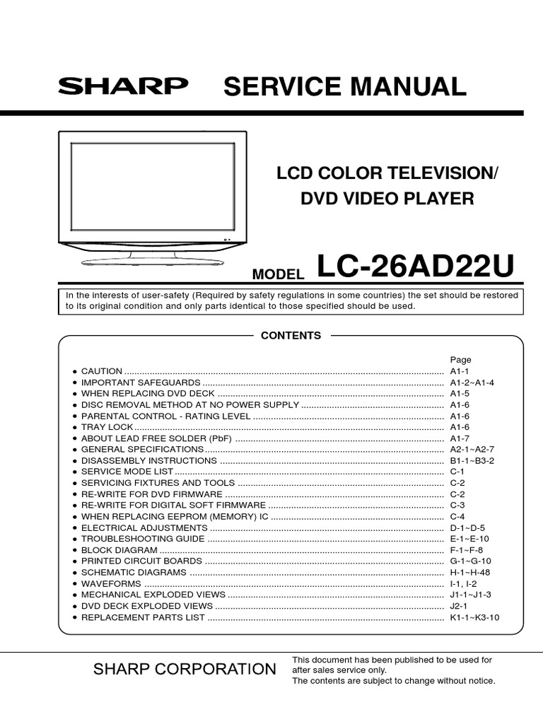Sharp Lc26ga4 Lcd Service Manual Download Schematics Eeprom Repair Info For Electronics Experts